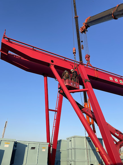 神戸での10t橋型クレーン解体作業、引き続き全力で頑張ります!応援よろしくお願いします😊。