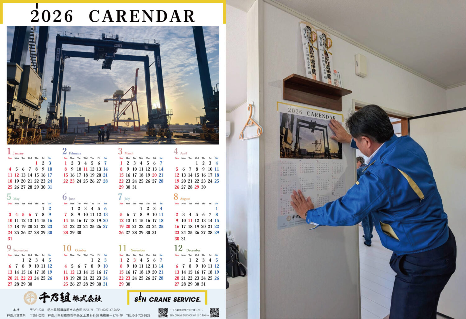 ニュース カテゴリー 選択する すべてのお知らせ ニュース 施工事例 アーカイブ 選択する 2026年1月 2025年12月 2025年10月 2025年9月 2025年8月 2025年6月 2025年4月 2025年3月 2025年2月 2025年1月 2024年12月 2024年11月 2024年10月 2024年9月 2024年8月 2024年7月 2024年6月 2024年5月 2024年4月 2021年7月 2020年7月 2020年6月 2020年5月 2026.01.07 ニュース 安全祈願実施&2026年カレンダー完成! 2026年1月5日・6日に栃木県黒磯神社及び神奈川県亀ヶ池八幡宮にて2026年の従業員・取引先の皆様の安全な作業を願い、安全祈願をとりおこないました。 本年も安全な作業に努めてまいります。 また、大変遅くなりましたが、千乃組株式会社のオリジナルカレンダーが完成いたしました! ポスターサイズの年間カレンダーとなっております✨ PREV LIST
